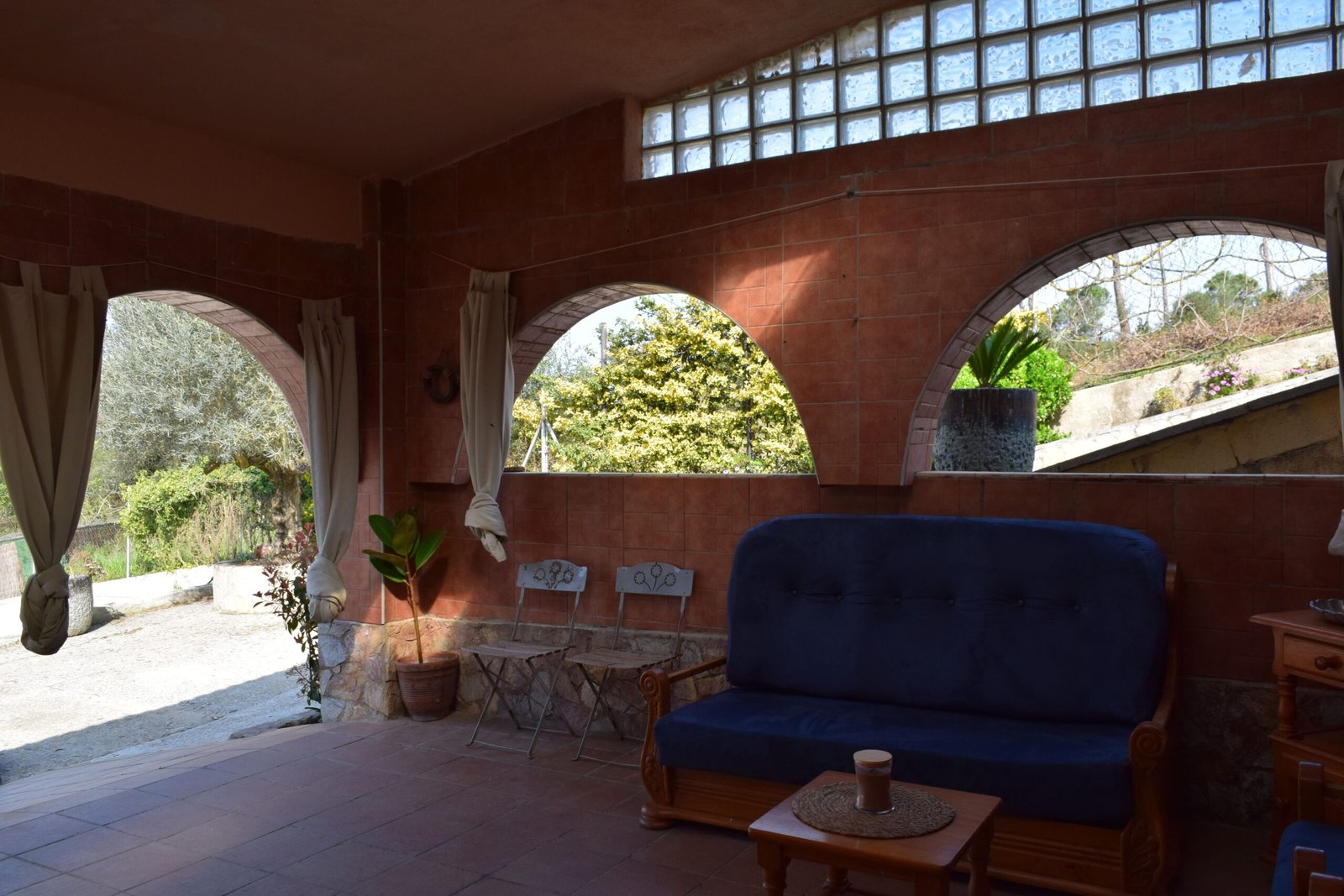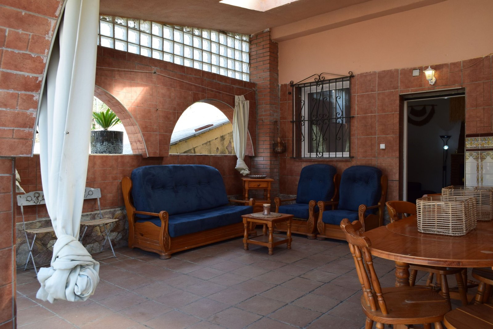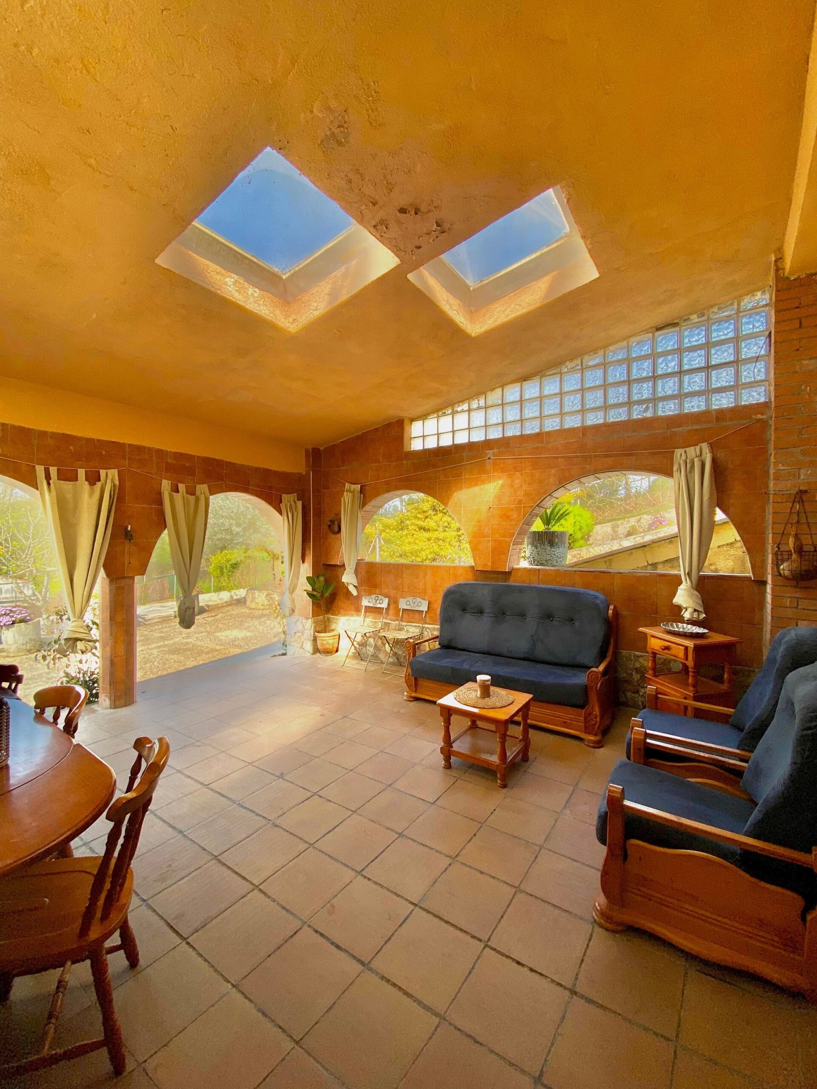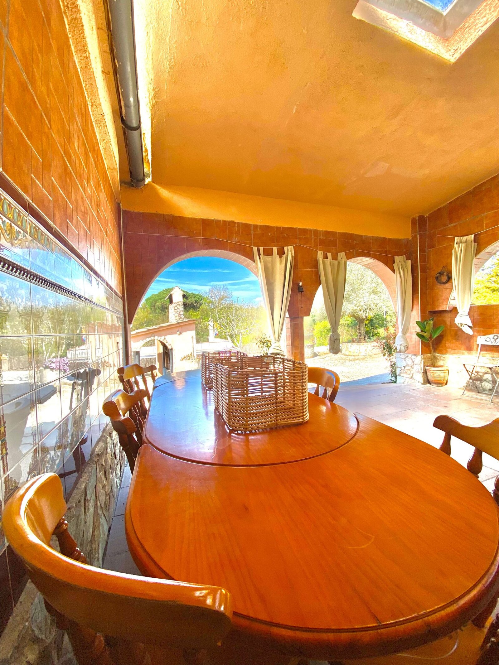 • Gran porche cubierto con arcadas, acondicionado para invierno con cortinas térmicas y estufas