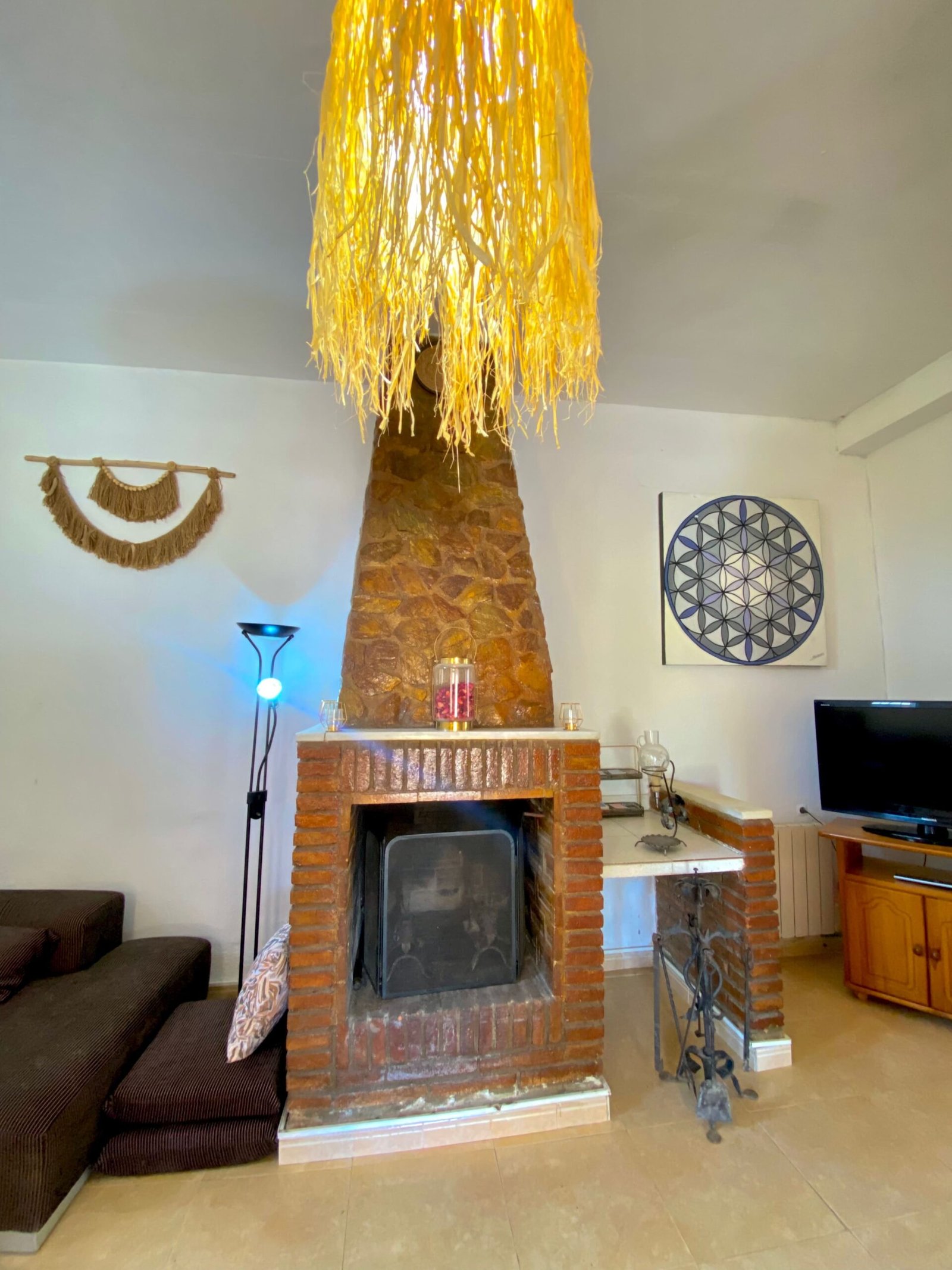 • Salón-comedor amplio con chimenea, sofás, televisión y juegos de mesa