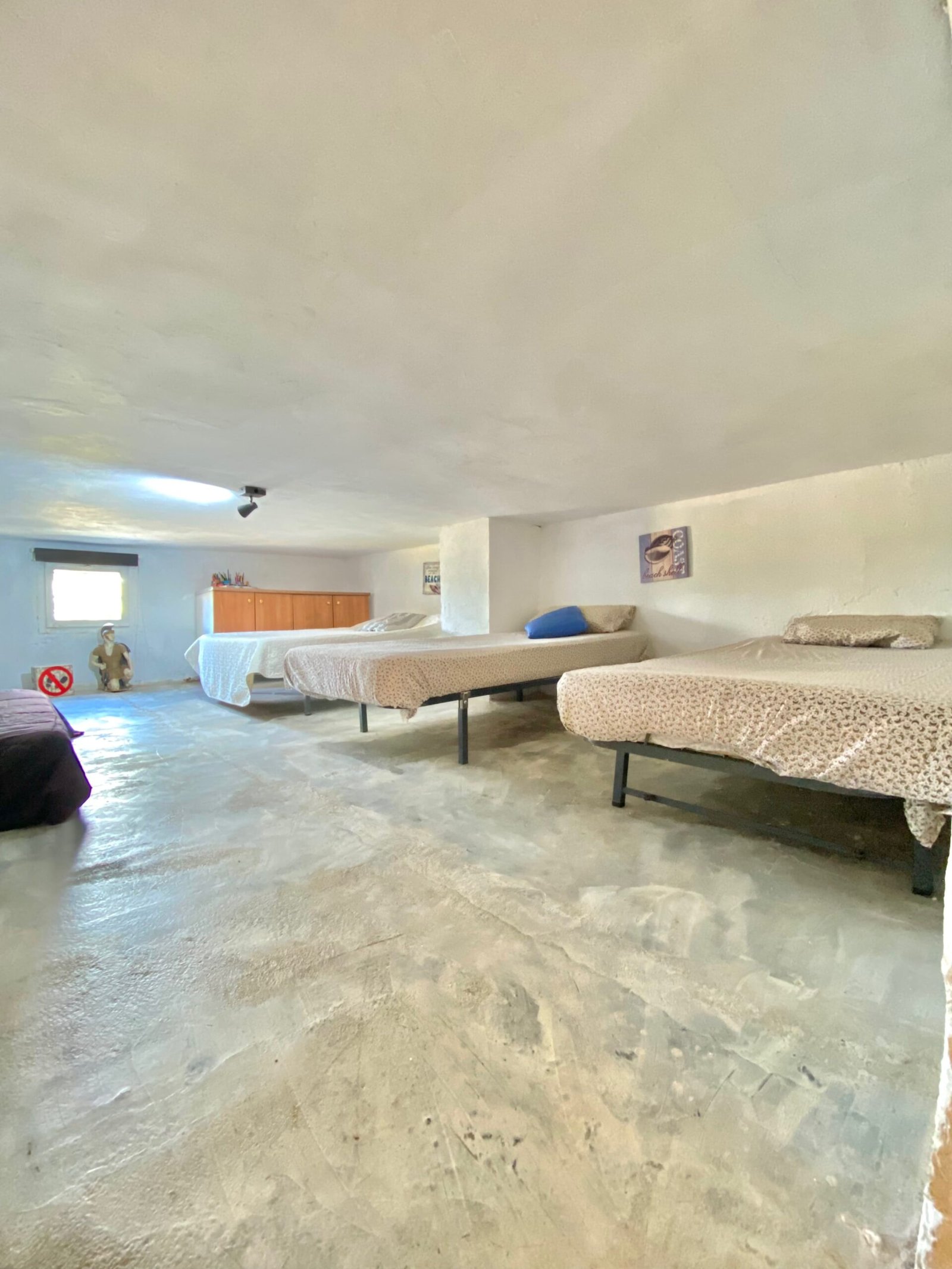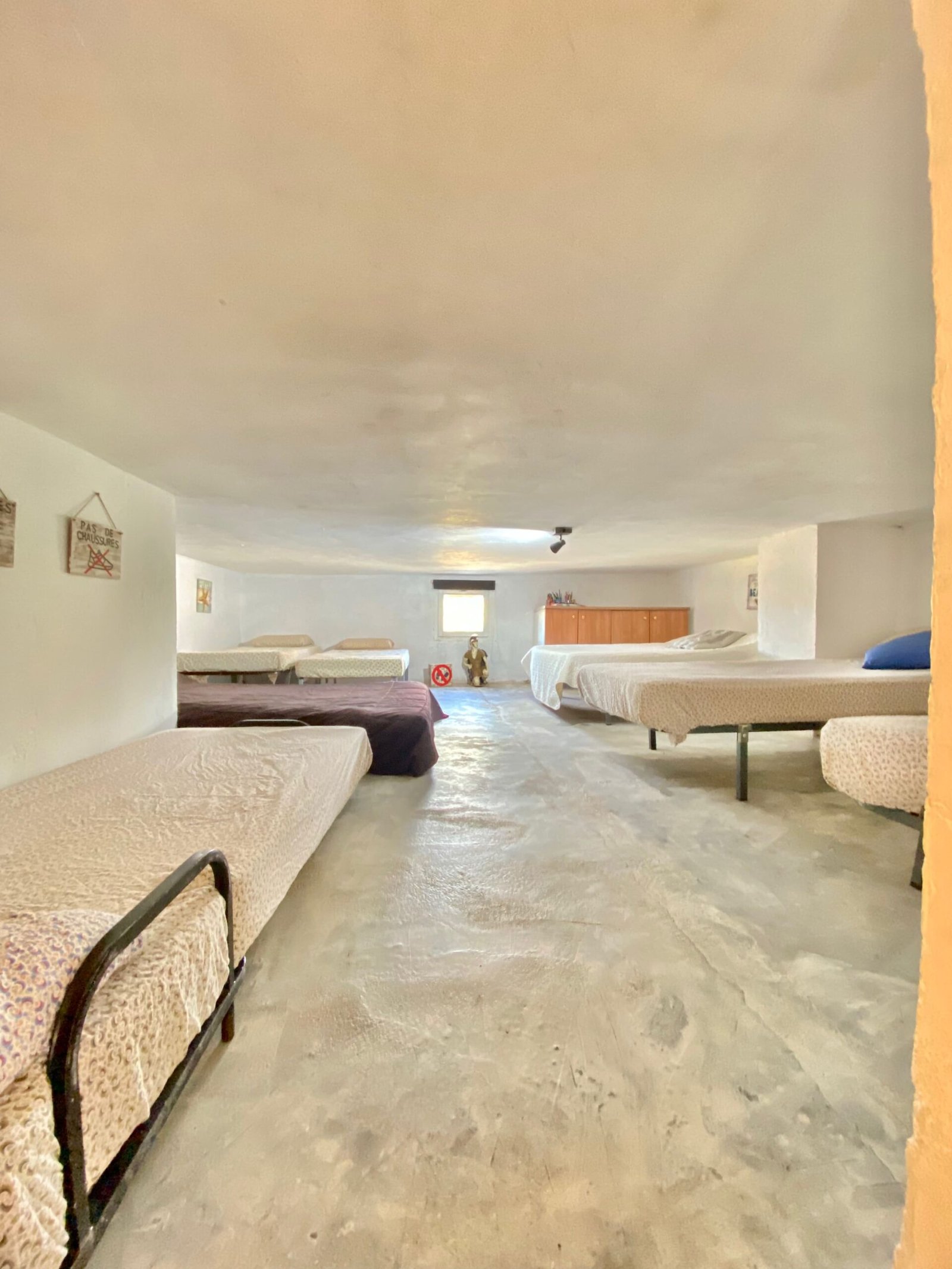 Sala especial conocida como “La Cueva” (antigua conejera de masía), actualmente habilitada como sala común para dormir hasta 9 personas, muy popular entre los niños.